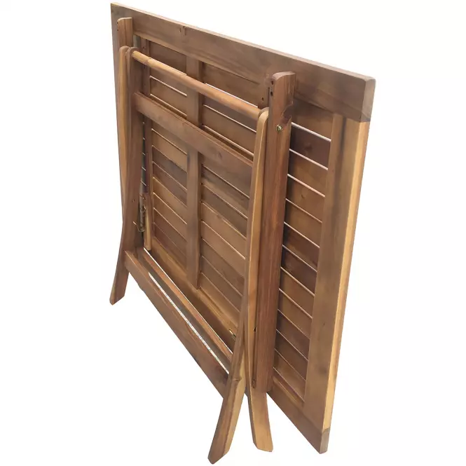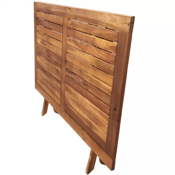 Vrtni sklopivi stol impresionira čistim dizajnom i ljepotom odabranog materijala. Masivno drvo bagrema u ugodnoj nijansi boje zaslijepit će vas svojom elegancijom. Bonus je mogućnost sklapanja stola i time štedi više prostora. Križno ojačane noge daju stabilnost. Sastav gornje ploče daje zanimljiv vizualni efekt. Stol je odličan izbor za svaki vrt, terasu ili balkon. Za stol preporučujemo stolice iz iste serije.