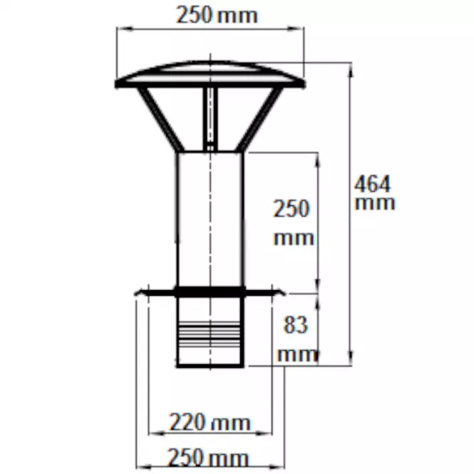 Kapa za dimnjak dizajnirana je za pokrivanje izlaza ventilacijskih i dimovodnih kanala. Štiti od kiše, snijega i gniježđenja ptica. Pocinčani lim pruža dugotrajnu zaštitu od ekstremnih temperatura i korozije.