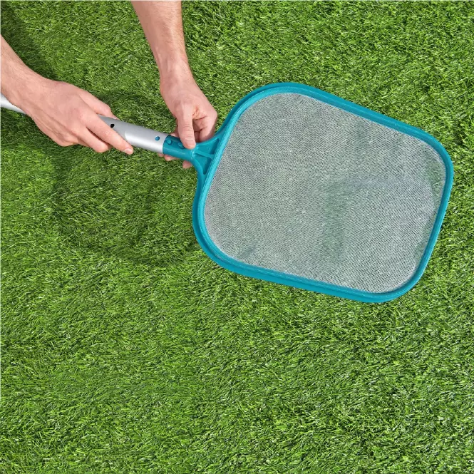 Bazen usisavač Bestway® AquaClean dovoljava vam povezati se na filtraciju, čime dobivate snažan, lagan usisavač s vrlo dugim crijevom od 7,5 m. Povezani skimer bazena prikuplja lišće, dok usisavač usisava nečistoće s dna. Aluminijski štap duljine 2,79 m omogućuje usisavaču i skimeru čišćenje teže dostupnih dijelova bazena. Nečistoće se skupljaju u odvojivom vakuumu. Set uključuje dovoljno adaptera za povezivanje sa svim bazenima i filtrima Bestway®. Pogodan je za filtraciju s protokom od 2.006 l/h ili većim. Idealno za sve nadzemne bazene.